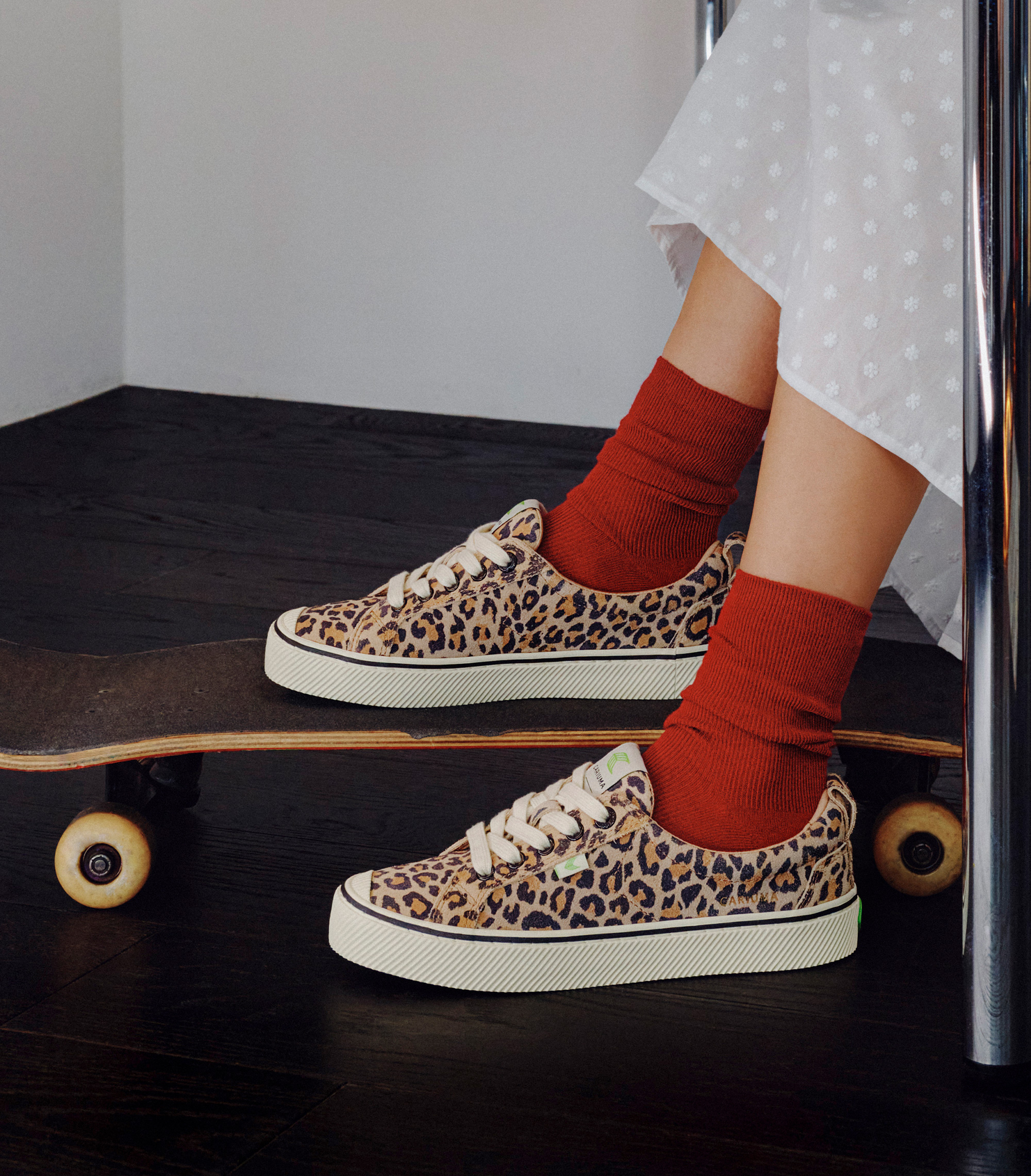 오카 로우 스니커즈 스웨이드 라인솔 레오파드 프린트
